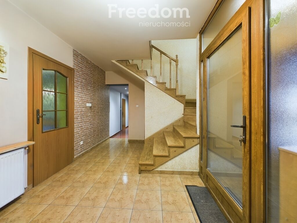 drewniane . Na podłogach panele , płytki , schody drewniane.